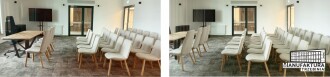 - Sala Szmaragdowa na 2 piętrze, o powierzchni135 m2 (z możliwością wydzielenia osobnej małej sali), plus: aneks kuchenny - 7 m2, oraz taras wewnętrzny – 9,8 m2.