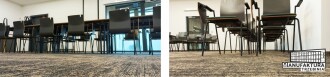- Krzesła tapicerowane z podłokietnikami i pulpitem (maximum 140 sztuk),
